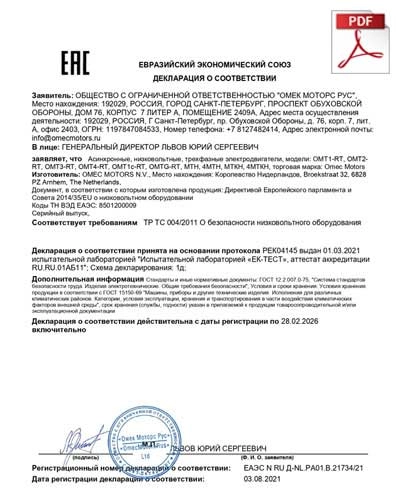 Применение в конструкции двигателя современных нагревостойких материалов, а также улучшенных электротехнических сплавов, позволило значительно снизить массу самих моторов и продлить срок их службы. Гарантийный срок эксплуатации моторов OMT1-RT IE3 составляет 10-15 лет, для некоторых моделей – до 25 лет.
