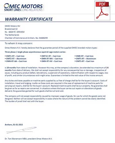 Компания владеет собственными складами на территории России и Европы - это позволяет обеспечивать оперативные отгрузки в любом необходимом количестве за несколько дней. Широкий модельный ряд дает возможность удовлетворять любые требования заказчиков. Кроме того, Omec Motors обладает собственными производственными мощностями для изготовления всей линейки электродвигателей на территории Российской Федерации.