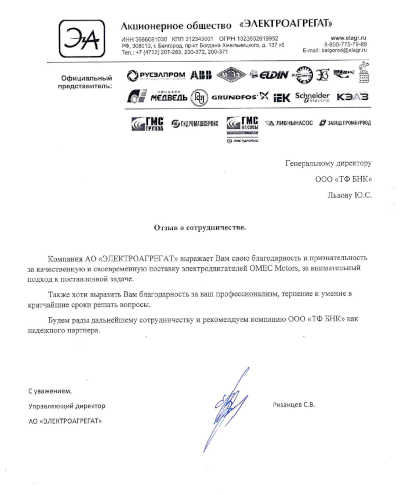 Отзыв компании "АО Электроагрегат"