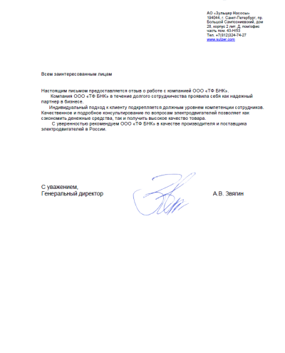 Отзыв компании АО "Зульцер Насосы"